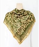 √√√Satin Yellow Floral Art Print on Olive Green - Silk Square Scarf 35" x 35" Features